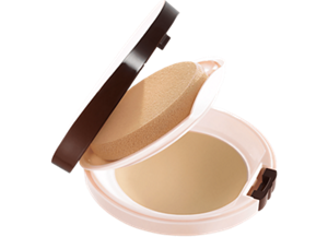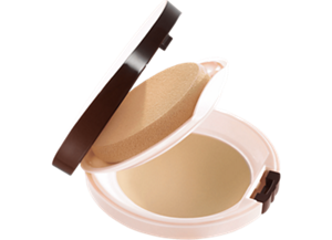少量をとり、額の中心から円を描くように広げ、まわりになじませます。