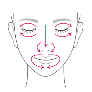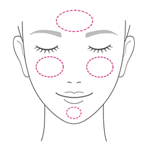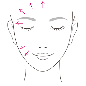 両ほお・額・あごにおき、ほお、額の中心から外側に向かってのばします。