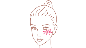 全体に塗布した後、指先にうすくとり、ほお骨を包み込むように重ね、境目を、まわりとなじませます。