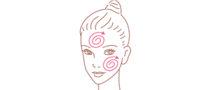 ほおも額も、中心から円を描くように広げると、ハリ感が出て、より明るい仕上がりになります。