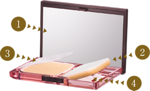 コンパクトの鏡は、拡大ミラーになっています。眼鏡をはずしてもよく見えるので、アイメイクをする時や、メイク直しにも快適です。